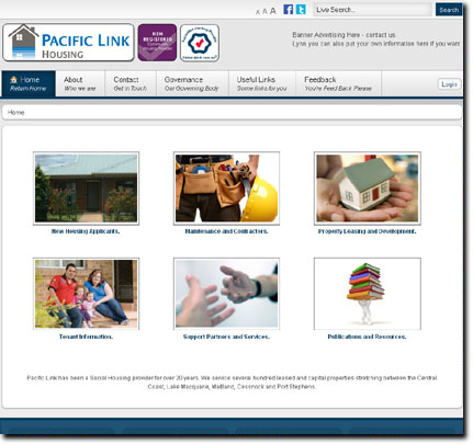 - Description:Pacific Link has been a Social Housing provider for over 20 years. We service several hundred leased and capital properties stretching between the Central Coast, Lake Macquarie, Maitland, Cessnock and Port Stephens.Tools Used: Joomla, HTML/DHTML, CSS, Javascript, PHP.